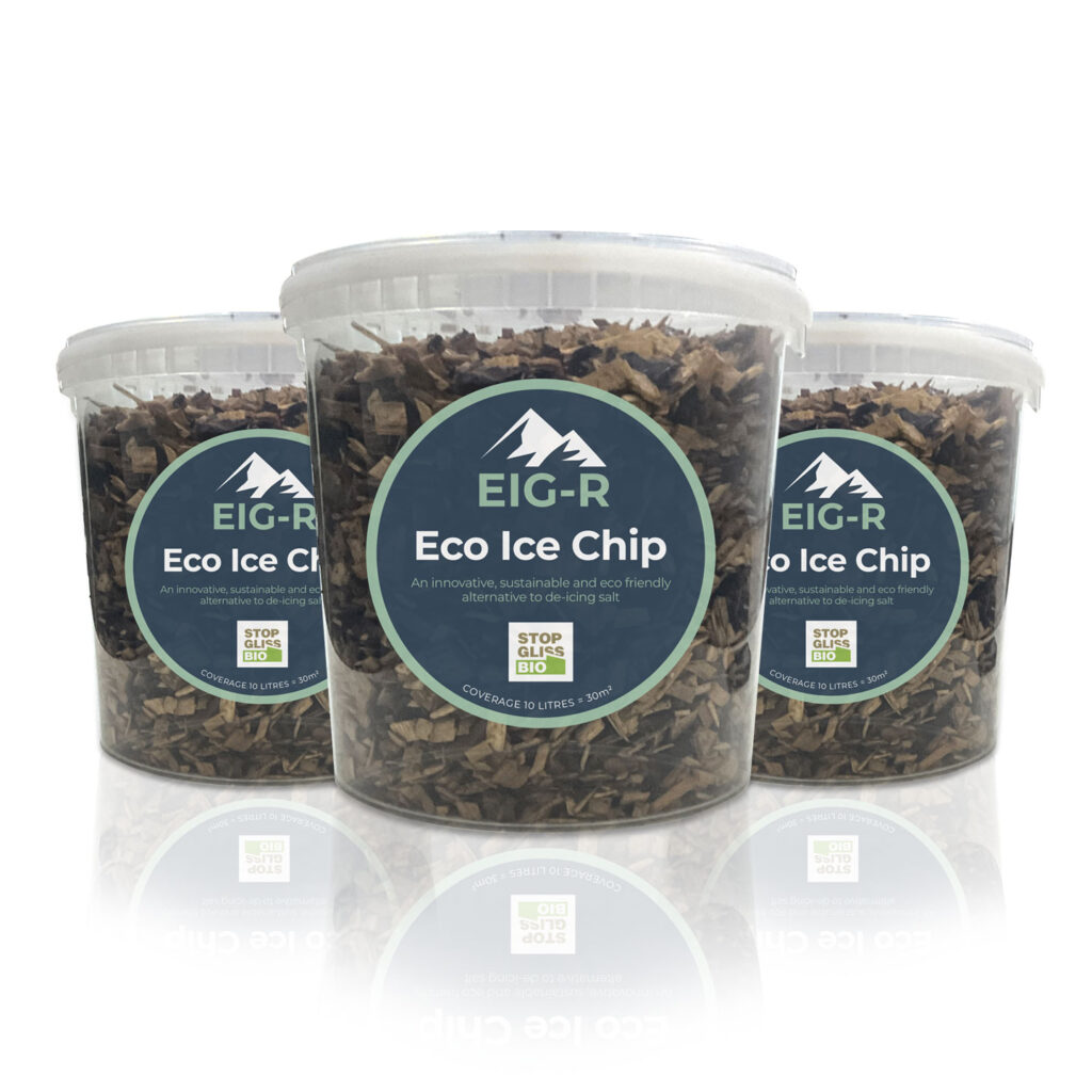 The suggested application rate of EcoIceGrip-R is approximately 1L per 3 square metres, or 8-12 chips under a typical footprint.